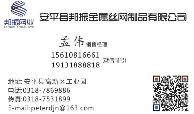 安平縣邦振金屬絲網(wǎng)制品有限公司   地址:安平縣高新區(qū)工業(yè)園